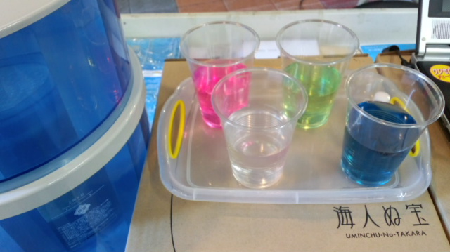 水道水の中性を珊瑚ミネラルでアルカリ性に変化させた証明です。