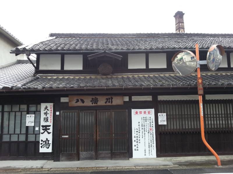 壁にある 一升瓶の ラベル 「八幡川」 さんなんです