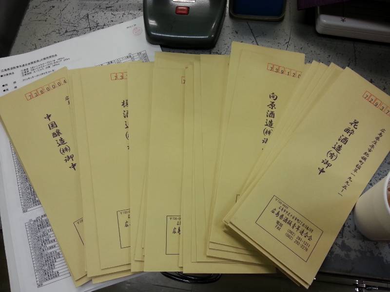 広島県内の 酒蔵さんに ご協力のお願いの文章を 発送作業を行いました