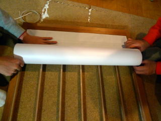 古い障子を、剥ぎ液でとって乾燥させて