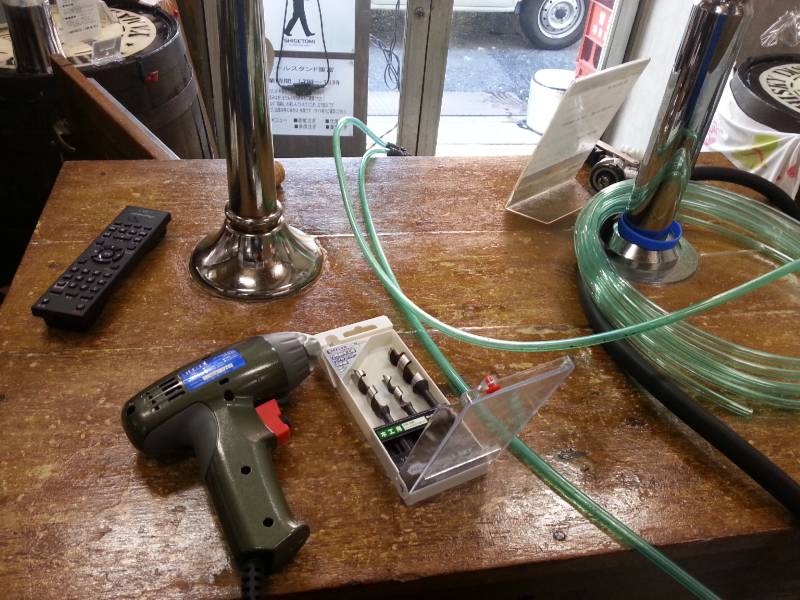 モルツ用に ビールホース用に すこし 大きめの穴に 広げました