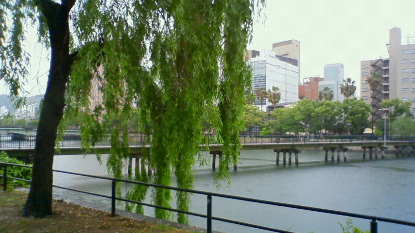 ふと見上げると、柳の枝が雨に濡れて・・・