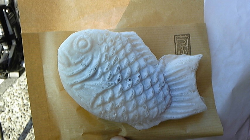 白たいやき二つ買い、中身はカスタードと、こしあん。白はモチモチ!