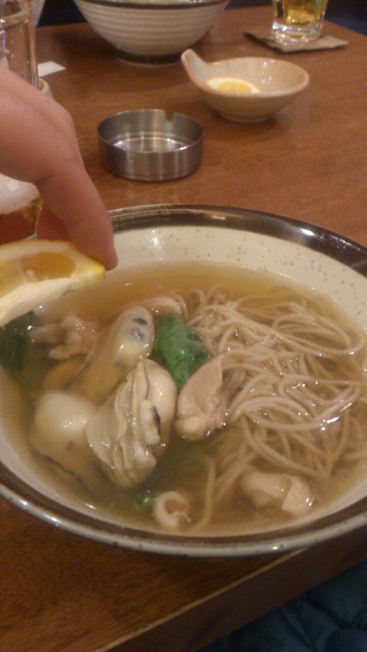 こちらでは「牡蠣入りそば(温)&小鉢」