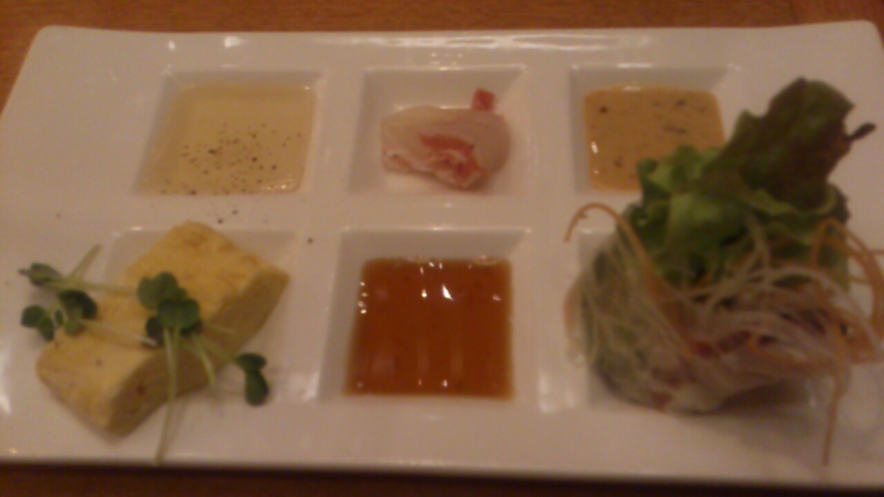 ダシ巻きたまご?サーモンカルパッチョ?春巻きです。
